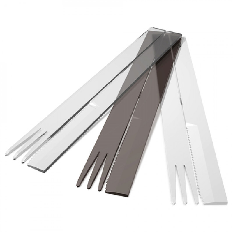 Isolla painopinnalla varustetut, kätevät juhla- tai take-away ruokailuvälineet, polystyreenimuovia. Elintarvikekäyttöön hyväksyttyjen välineiden upea ja innovatiivinen muotoilu tekee niistä täydellisiä profilointiin. Mitat: 31 x 201 mm. Max painoalue: 13 x 138 / 13 x 100 mm.