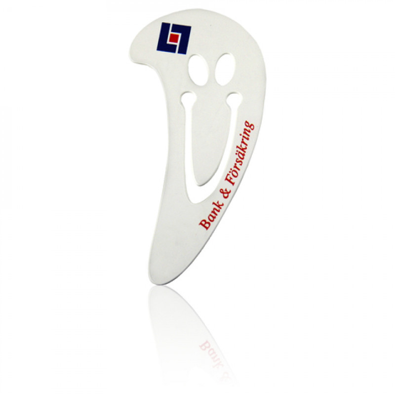 Suurien mahdollisuuksien pienikokoinen vempain, joka toimii niin kirjeveitsenä kuin paperiliittimenä, kirjanmerkkinäkin - kaikki samassa!Käytännöllisen ja hauskan hauskan muotoilunsa ansiosta sitä on ilo pitää esillä kirjoituspöydällä. Mitat: 75 x 35 mm. Painoalue määritellään aiheen mukaan.