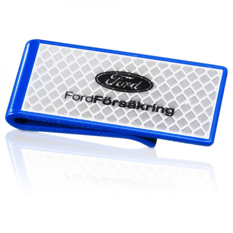 Kätevä klipsi, joka kiinnittyy vaivatta takin hihaan, taskuun tai selkäpuolelle - mahdollisuuksia on monia. Heijastaa valoa erittäin hyvin. Saatavana sinisenä, punasena, mustana tai valkoisena. Mitat: 79 x 33 mm. Max painoalue: 67 x 27 mm.