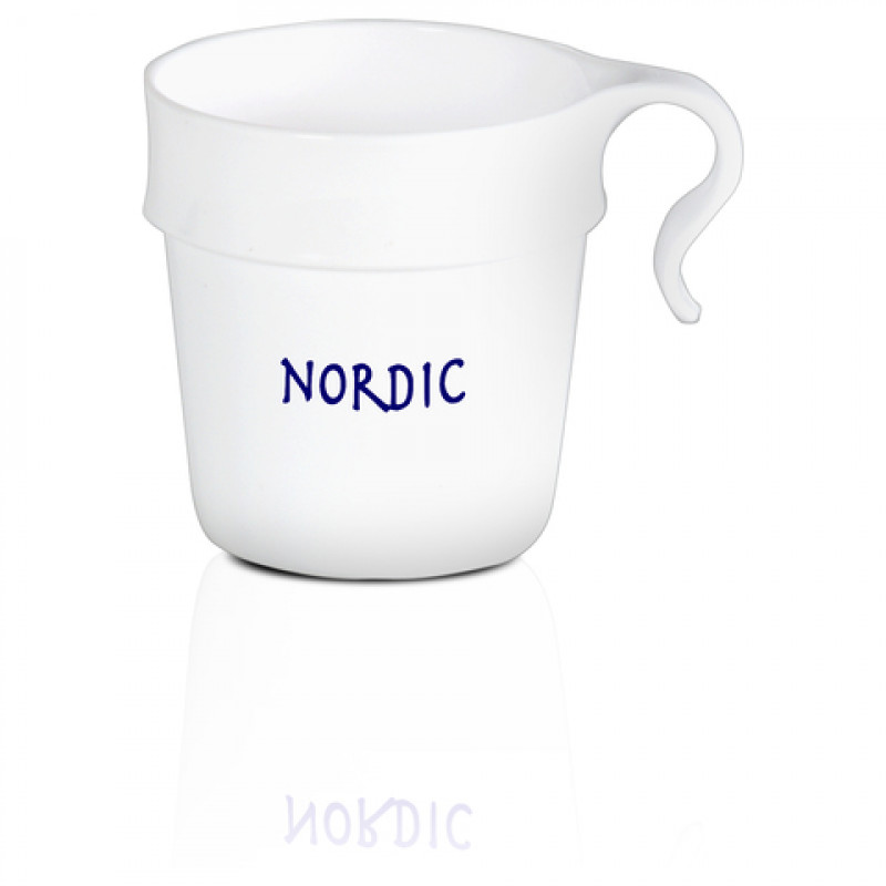 Muovimuki, joka kestää vierailut kovimmissakin ympäristöissä. Täydellinen esim. retkillä. Pinottava. Mitat: 30 cl. Korkeus 85 mm. Max painoalue: Ø 40 mm.