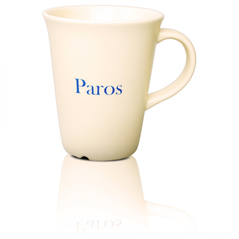 Oteystävällinen ja elegantti muki kestävää kivitavaraa. Matta ulkopuoli ja kiiltävä luunvalkoinen sisäpuoli. Mitat: 28 cl. Korkeus 104 mm. Max painoalue: 150 x 30 mm.