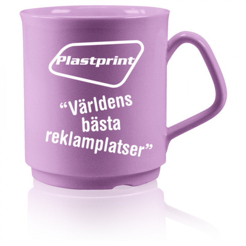 Yksi suosituimmista mukeista on nyt saatavana myös muovimukina, jossa on reilu tila painatukselle. 1ä2 värin painatus. Mitat: 30 cl. Korkeus 93 mm. Max painoalue: 170 x 60 mm.