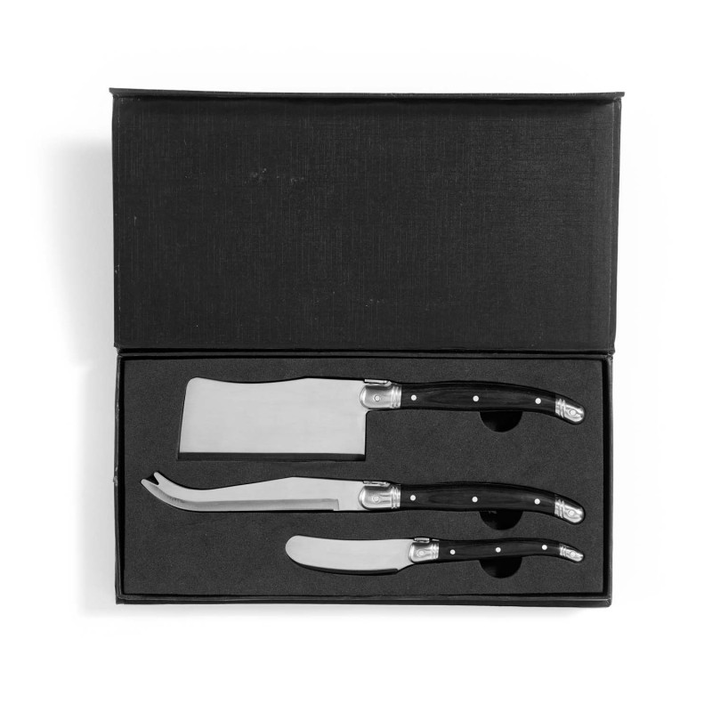 Kolmiosainen juustoveitsisetti, joka on saanut inspiraationsa ranskalaisesta bistrotyylistä. Kolme erikokoista veistä pehmeille ja koville juustoille. Klassisen kauniit työvälineet upeille juustoille! Pakkauksen koko 26.8x13.6x2.5 cm. Pakattu lahjalaatikkoon.