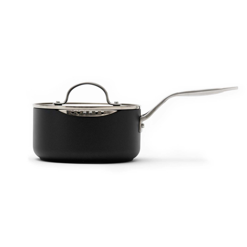 Tyylikäs mattamusta alumiininen kastikekattila. Alumiinirunko takaa nopean ja tasaisen lämpenemisen. Pohja on 4mm paksu ja sisäpuolen peittää Xylan non-stick pinnoite. Soveltuu kaikille liesityypeille, myös induktiolle. Koko 2,3 L • 18x9 cm. Pakattu lahjalaatikkoon.