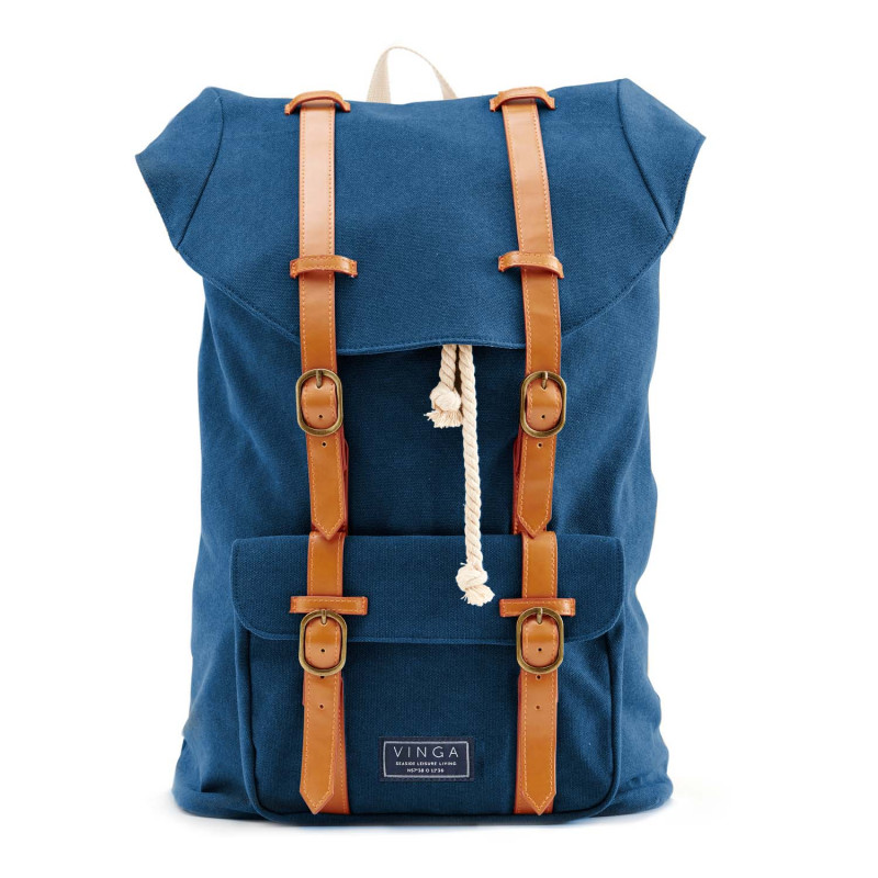 Tilava reppu kestävästä puuvillakanvaasista. Upeina yksityiskohtina käytännölliset narut ja keinonahkaremmit, jotka antavat repulle viimeisen silauksen. Edessä on vetoketjullinen (YKK) tasku pikkutavaroille. Pituussäätö olkahihnoissa. Koko: 55x38x15 cm. Pakattu muovipussiin.