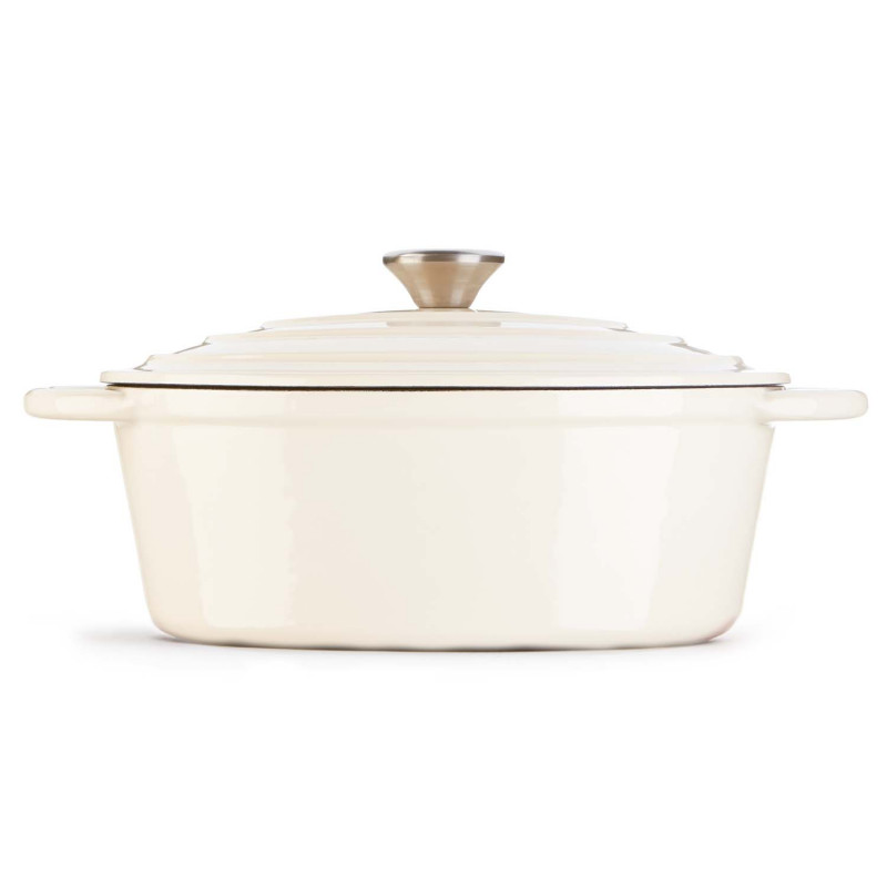Reilunkokoinen kannellinen emaloitu Valurauta. Valurauta jakaa lämmön tasaisesti ja se sopii erinomaisesti esimerkiksi nyhtöpossun, pataliharuokien, kasvisten ja herkullisen pataleivän valmistukseen. Kannessa olevien nystyröiden ansiosta vesihöyry kiertää padassa tasaisesti. Se soveltuu uunin ohella myös kaikille muille liesityypeille ja se on pöydässä vakuuttavan näköinen komistus. Lisänä reseptivihkonen. Koko. 3,5 l • 27x21x14 cm. Pakattu lahjalaatikkoon.